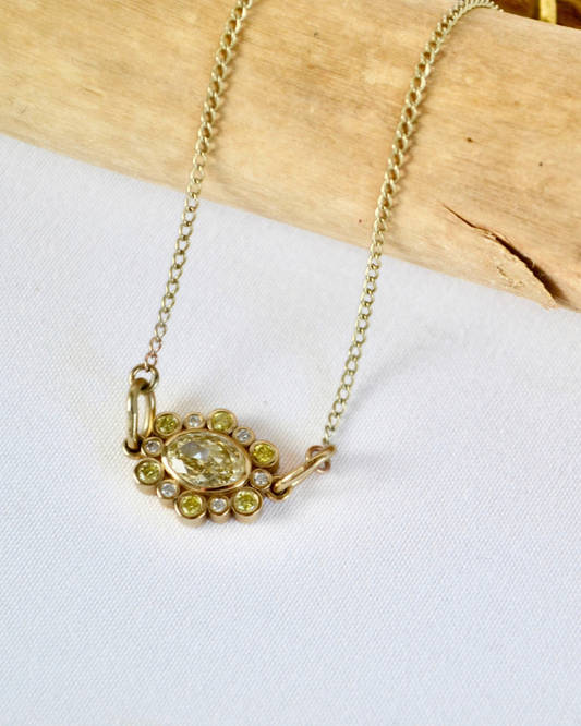Gold Yellow and White Diamond Anemone Cluster Pendant