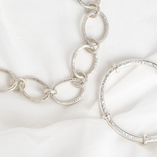 Chunky Silver Diamond Bangle & Necklace Set